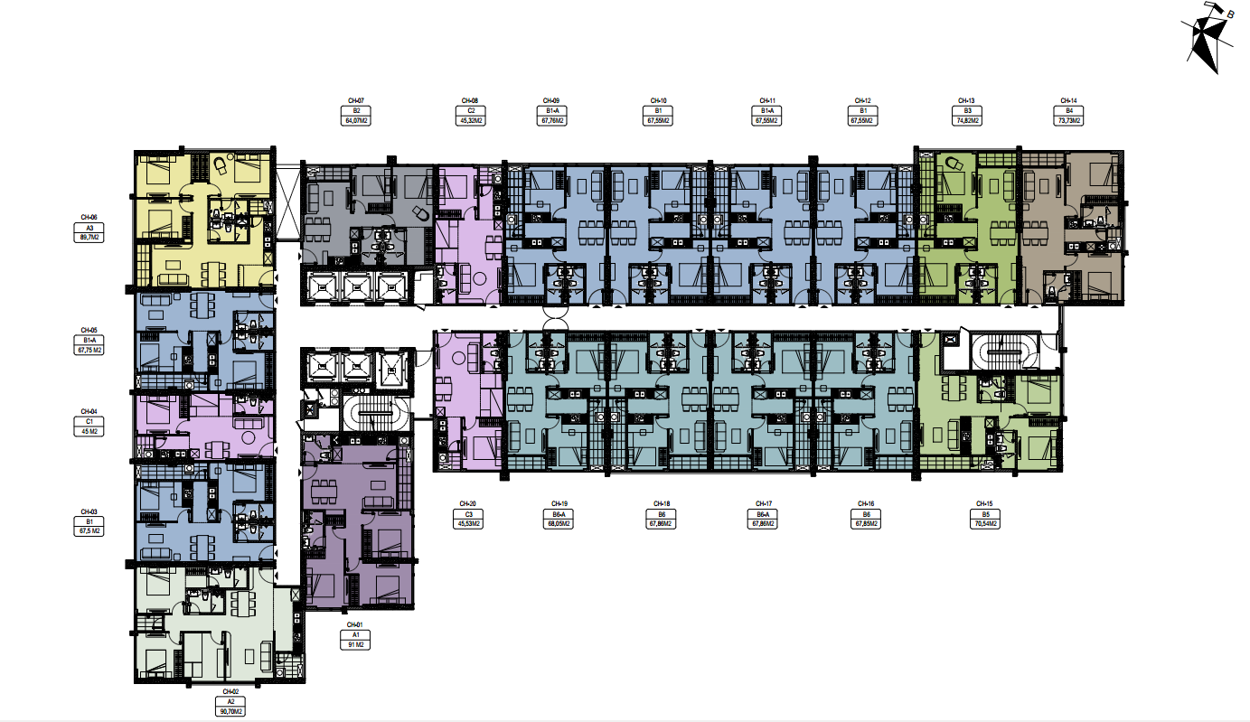 Mặt bằng tầng điển hình (tầng 1) dự án căn hộ Apec Aqua Park Bắc Giang